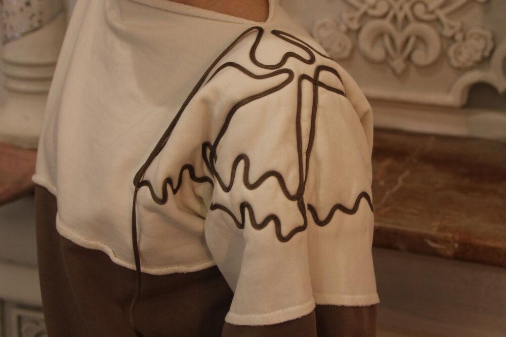 ДНК бренда – уникальные стежковые графические вышивки и аппликации, схемы для которых создаются по мотивам картин любимых художников автора. Такие схемы разрабатываются индивидуально для каждой модели, изначально вручную, а затем оцифровываются.